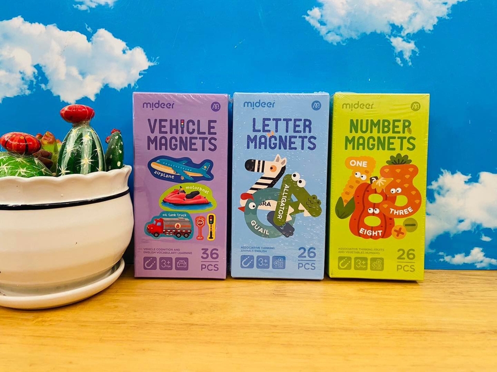 "Học mà chơi – chơi mà học” – đây chắc hẳn là điều mong mỏi nhất của mỗi bậc cha mẹ với bé yêu của mình. Bộ đồ chơi giáo dục chữ cái và số đếm nam châm của Mideer chắc chắn sẽ làm ba mẹ hài lòng. Bộ đồ chơi thiết kế màu sắc tươi sáng, hình con vật rất ngộ nghĩnh giúp bé nhận biết con vật và ghép từ, số đơn giản.