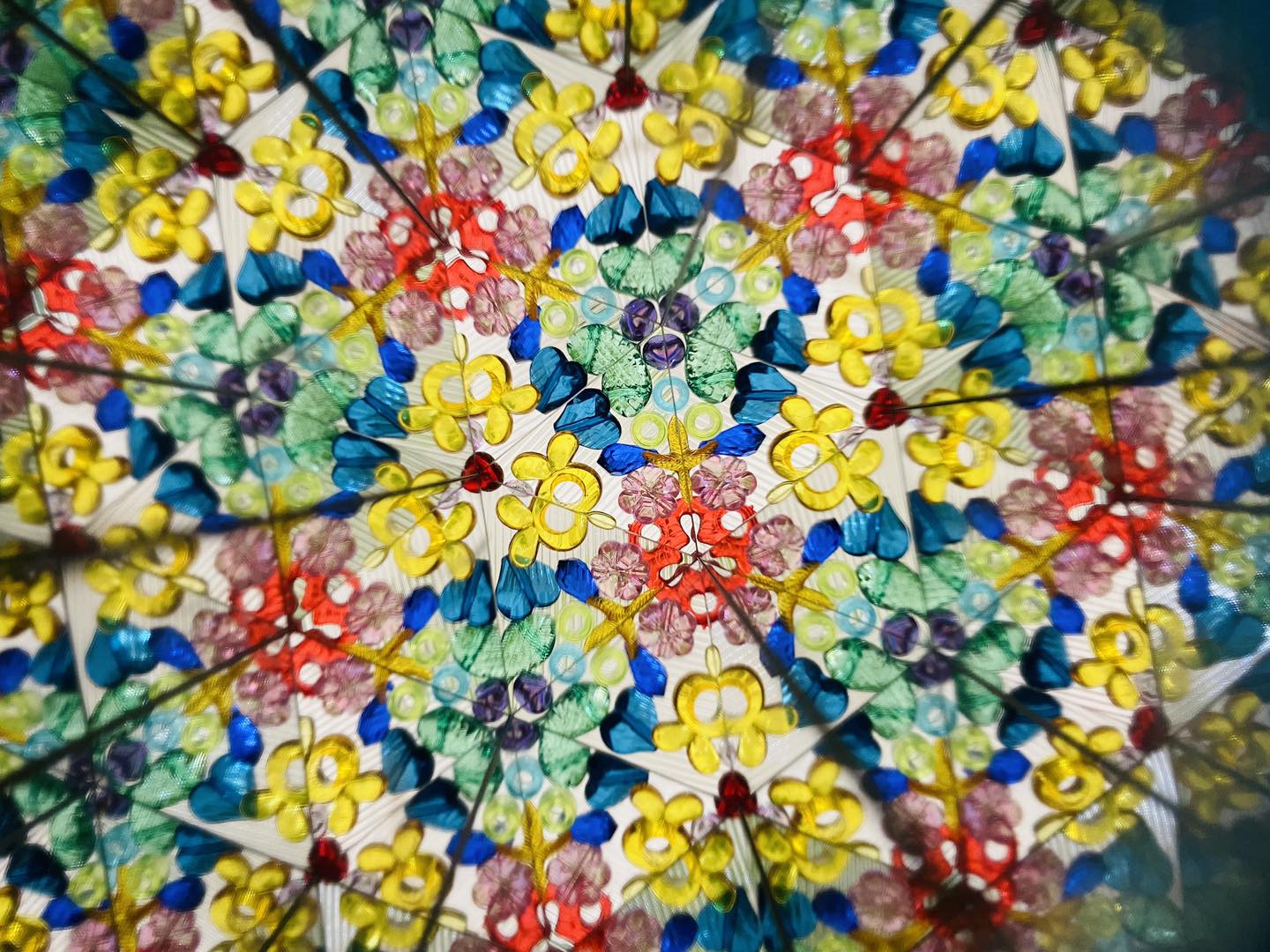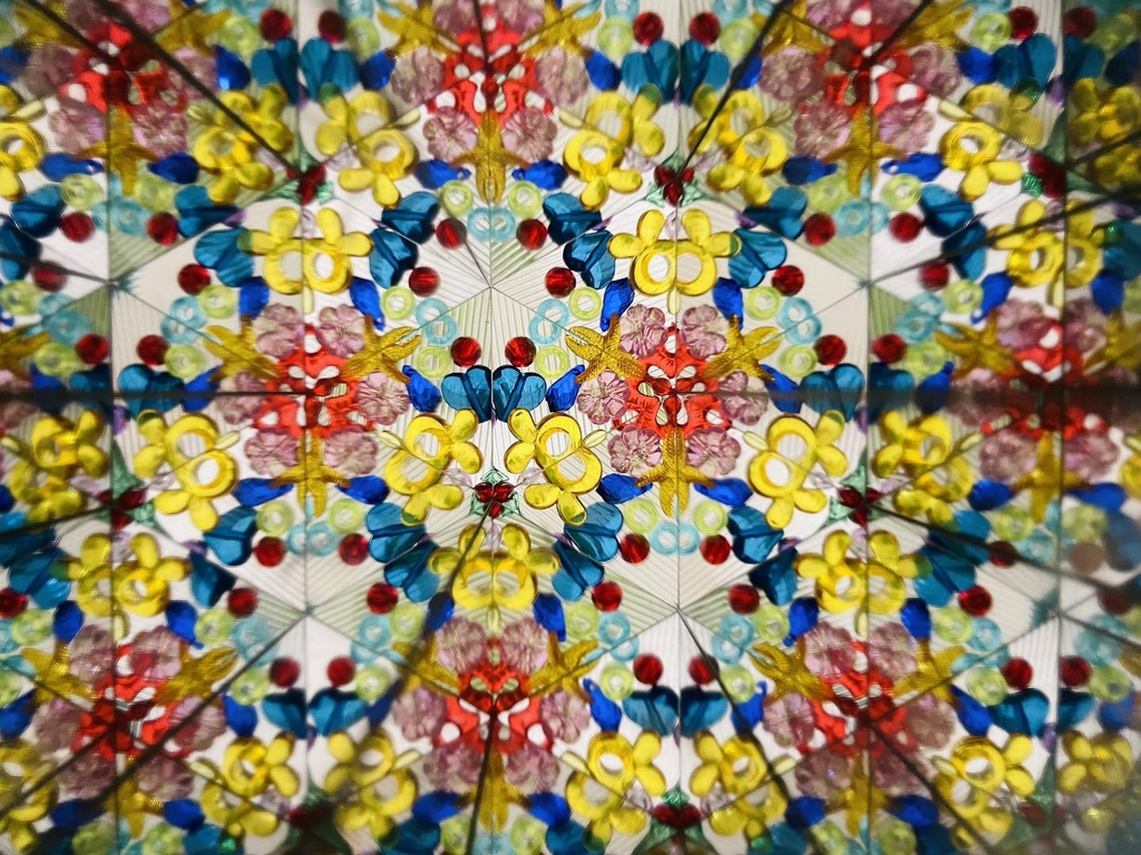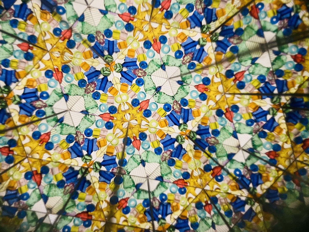 Bất kỳ hình dạng nào của các vật thể được tạo ra đều là những mẫu đẹp đối xứng vì nó được phản chiếu qua gương. Kiểu 2 gương tạo thành mẫu hoặc những mẫu được ngăn cách bởi nền đen, trong khi kiểu 3 gương (hình tam giác đóng) tạo thành mẫu lắp đầy khung nhìn.