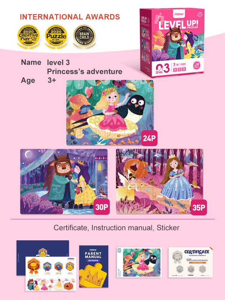 Bộ Xếp Hình Cho Bé Mideer Level Up Puzzles – Level 3 Chủ đề Công chúa và Hoàng tử Cáo