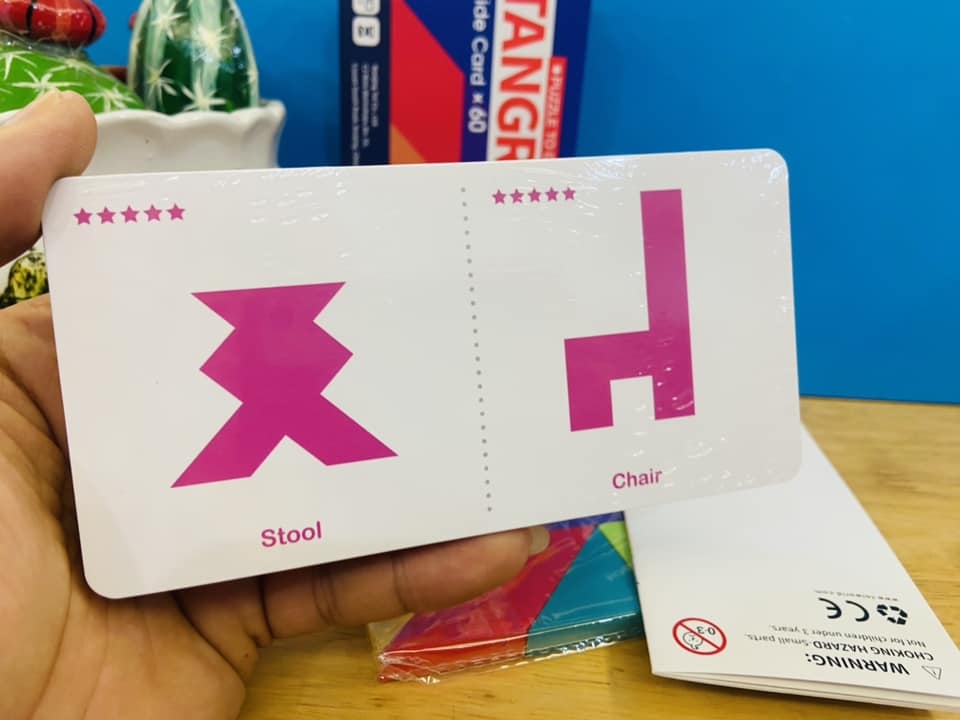 Tangram cho trẻ em thì các mẫu hình sẽ đơn giản hơn, gần gũi hơn: con số, chữ cái, các loại động vật...Rèn luyện sự kiên trì, tỷ mỉ, tư duy logic và độ chính xác cao chính là lợi ích mang lại từ trò chơi cổ điển này.